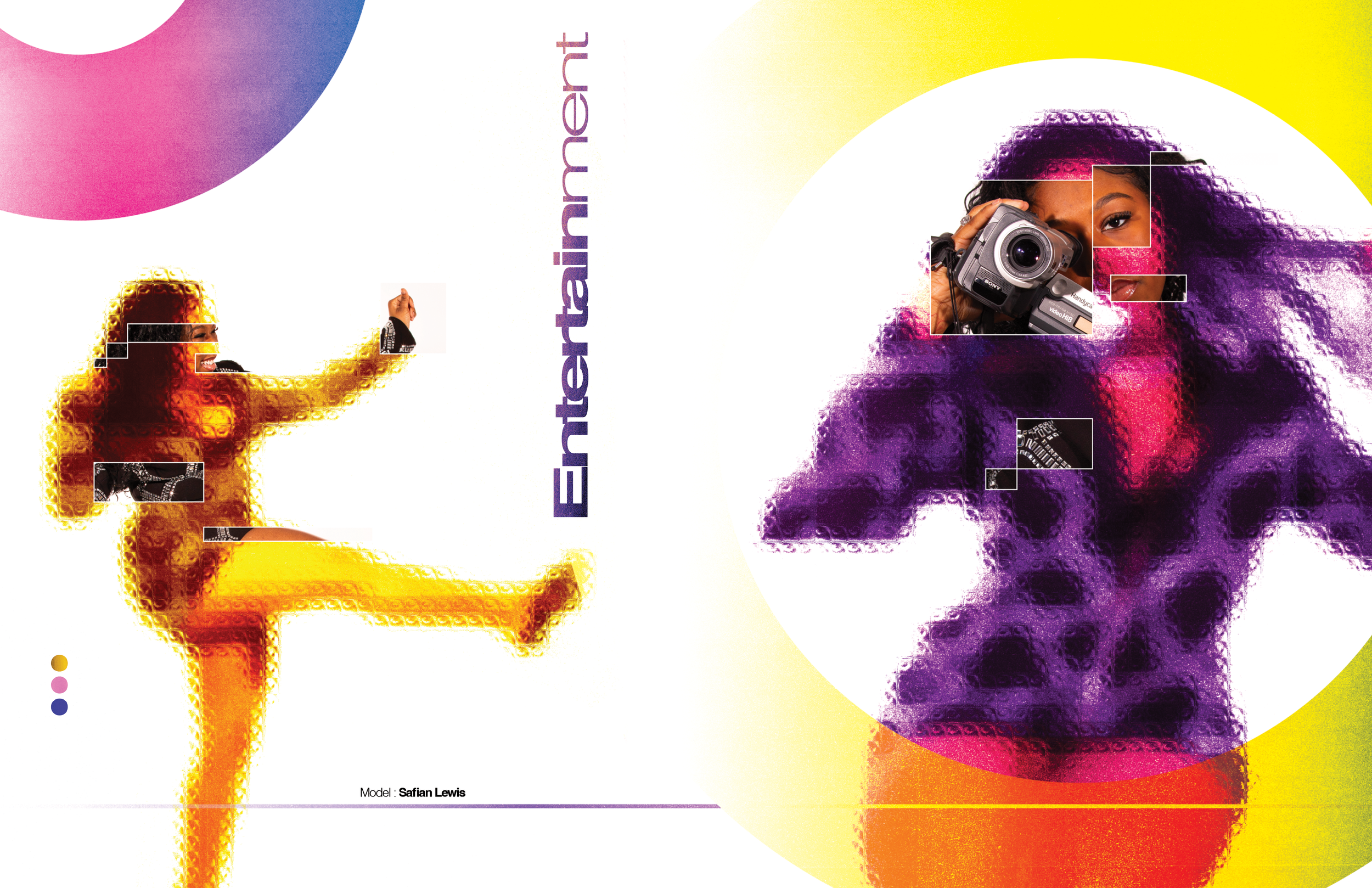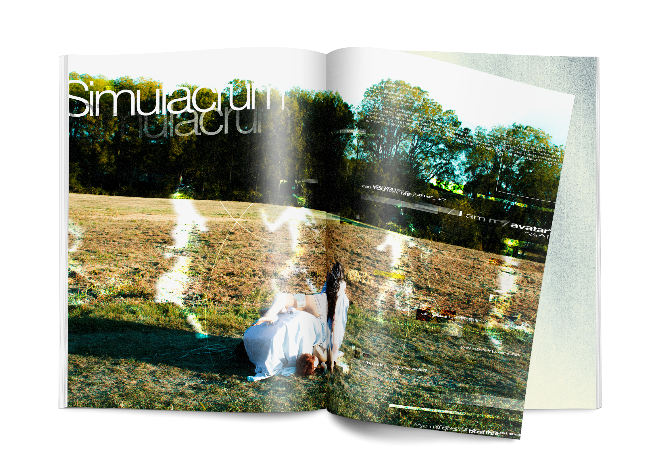 on a range of projects. Pictured to the right is a spread that I worked with the photo team to develop. I was challenged with combining a handful of photos from the shoot to visualize a glitched reality where an avatar / digital world is beginning to overtake the natural.